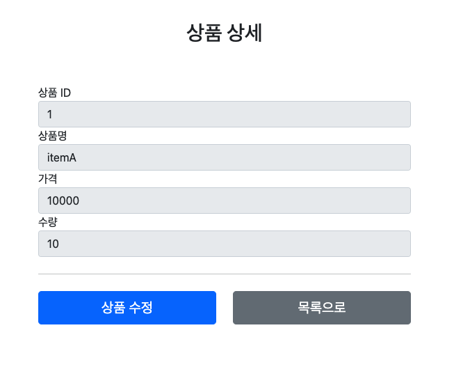 이제 저장이 잘 되었으면 상품 상세 화면에 "저장되었습니다."라는 메시지를 보여주게 해보자. addItemV5에 있던 PostMapping는 주석처리 해주고 V6를 만들어 주자. // @PostMapping("/add") public String addItemV5(Item item) { itemRepository.save(item); return "redirect:/basic/items/" + item.getId(); } @PostMapping("/add") public String addItemV6(Item item, RedirectAttributes redirectAttributes) { Item savedItem = itemRepository.save(item); redirectAttributes...