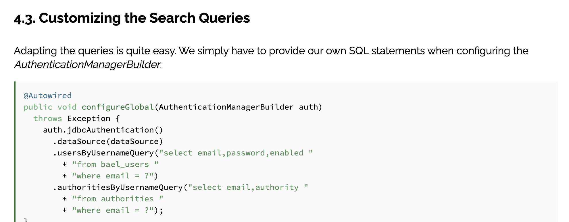 사용자 권한에 따라 API 제한 하기 @Secured, @RolesAllowed, @PreAuthorize 혹은 새로운 어노테이션을 만들어서 접근 권한을 설정 가장 간단한 @Secured를 이용 WebSecurityConfig Class에서 아래 부분에서 @Autowired를 주석처리 해주니 일단 에러가 임시방편으로 해결되었다. 근데 Signup하고 signin이 되는 과정으로 안넘어간다. 로그인이 안되는중 => 게시판도 안보임. MySQL [mydb]> select * from user; +----+----------+--------------------------------------------------------------+---------+ | id | username | password | ..