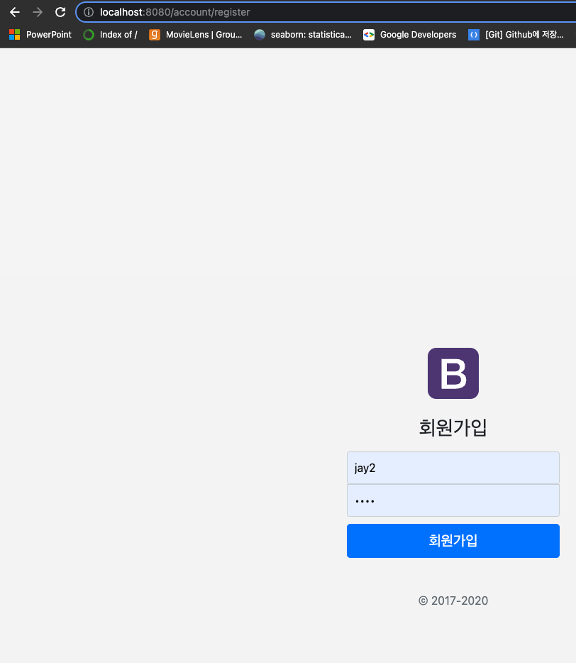 사용자 권한에 따라 API 제한 하기 @Secured, @RolesAllowed, @PreAuthorize 혹은 새로운 어노테이션을 만들어서 접근 권한을 설정 가장 간단한 @Secured를 이용 WebSecurityConfig Class에서 아래 부분에서 @Autowired를 주석처리 해주니 일단 에러가 임시방편으로 해결되었다. 근데 Signup하고 signin이 되는 과정으로 안넘어간다. 로그인이 안되는중 => 게시판도 안보임. MySQL [mydb]> select * from user; +----+----------+--------------------------------------------------------------+---------+ | id | username | password | ..