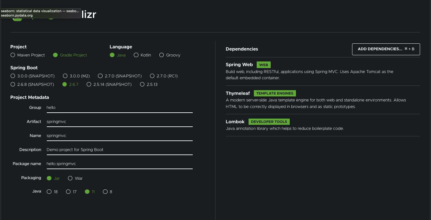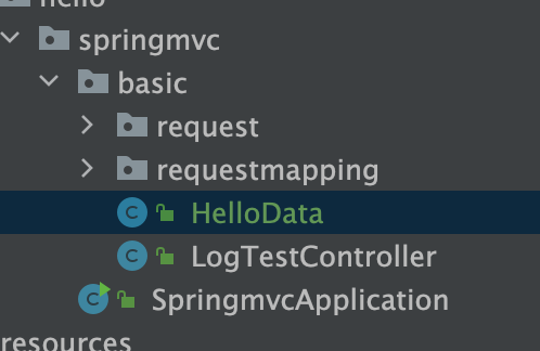 스프링은 요청 파라미터를 받아서 필요한 객체를 만들어주고 객체에 값을 넣어주는 @ModelAttribute 기능을 제공한다. 요청 파라미터를 바인딩 받을 객체를 만들어 보면 // HelloData package hello.springmvc.basic; import lombok.Data; @Data public class HelloData { private String username; private int age; } 롬복 @Data @Getter , @Setter , @ToString , @EqualsAndHashCode , @RequiredArgsConstructor 를 자동으로 적용해준다. request 패키지의 RequestParamController에서 아래와 같이 지정해주고 돌려주면 로그가 ..