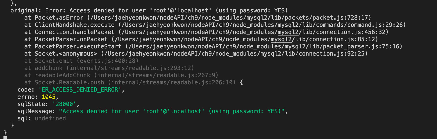 npm start시 아래와 같은 에러 해결하고 넘어가자. (비번이 틀렸나?,,) 데이터베이스를 만들어 보자 schema - column 구조인데 아래 명령어가 db 생성 명령어 npx sequelize db:create 명령어를 치게되면 config 폴더안에 config 파일을 찾아주는데 config.json 파일에서 mysql id / password를 쳐주자. // config.json json파일에서 주석처리 안되지만 블로그니까 써줌 // 실제 데이터베이스에서 개발용 / 테스트용 / 배포용으로 나누게 된다. // 혹은 개발용 db / 배포용 db로 나눔 { "development": { "username": "root", "password": "apdlvmf1!!!", "database": "nod..